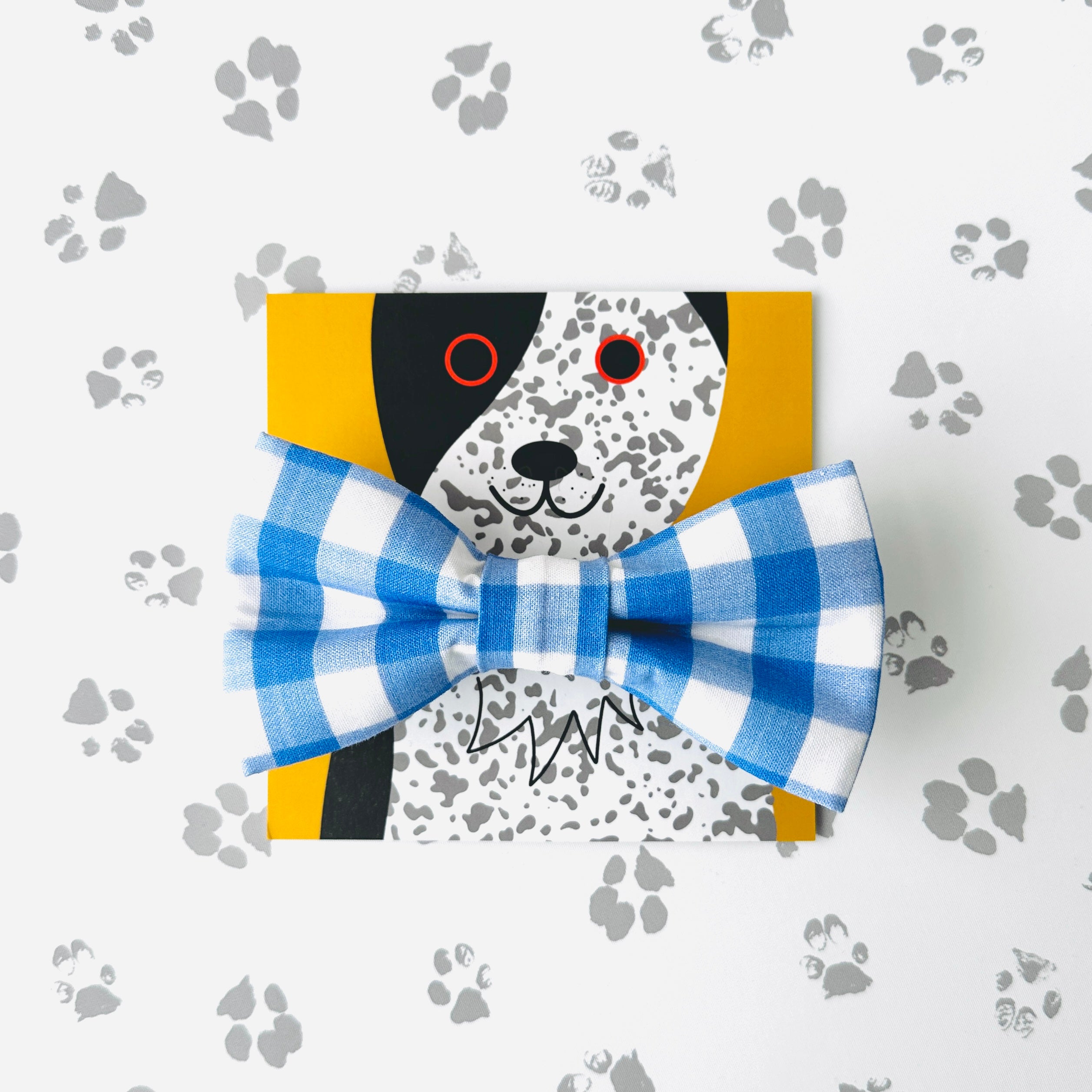 The Cobalt Gingham Bow Tie is made with 100% cotton fabric, and reinforced with fabric stabilizer. It features two velcro straps that make it easy to attach to any collar.