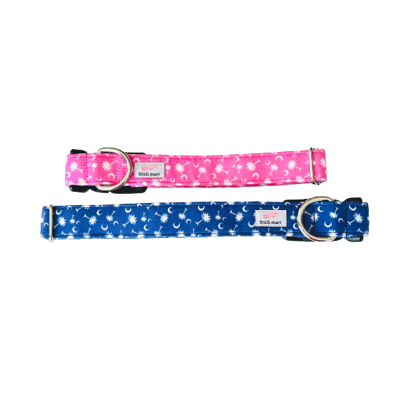 The South Carolina Palmettos in Blue Collar is made with 100% cotton fabric and reinforced with mold proof webbing. Available in a Classic or Martingale style collar.
