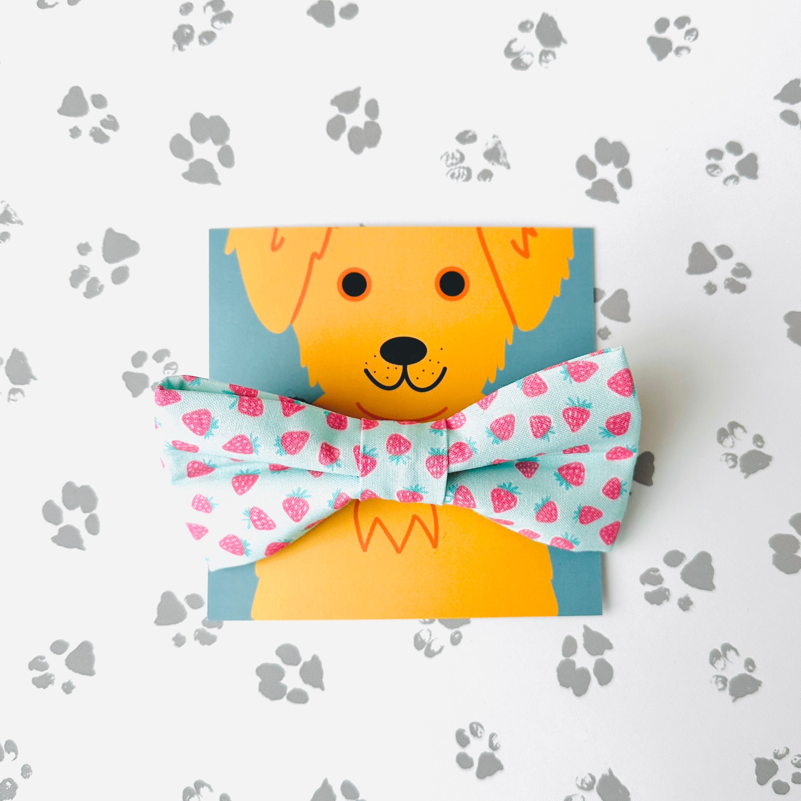 The Strawberry Sorbet Bow Tie is made with 100% cotton fabric, and reinforced with fabric stabilizer. It features two velcro straps that make it easy to attach to any collar.