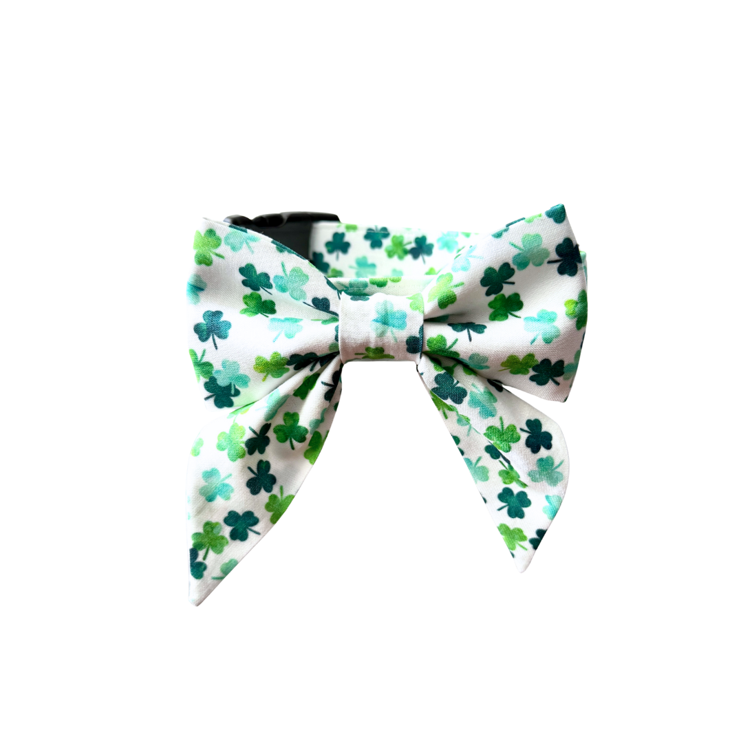 The Shamrocks Sailor Bow is made with 100% cotton fabric, and reinforced with fabric stabilizer. It features two velcro straps that make it easy to attach to any collar.
