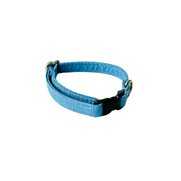 The Chambray Cat Collar is made with 100% cotton fabric and reinforced with mold proof webbing. Cat collars have a breakaway buckle closure, D-ring attachment for tags, and are adjustable.