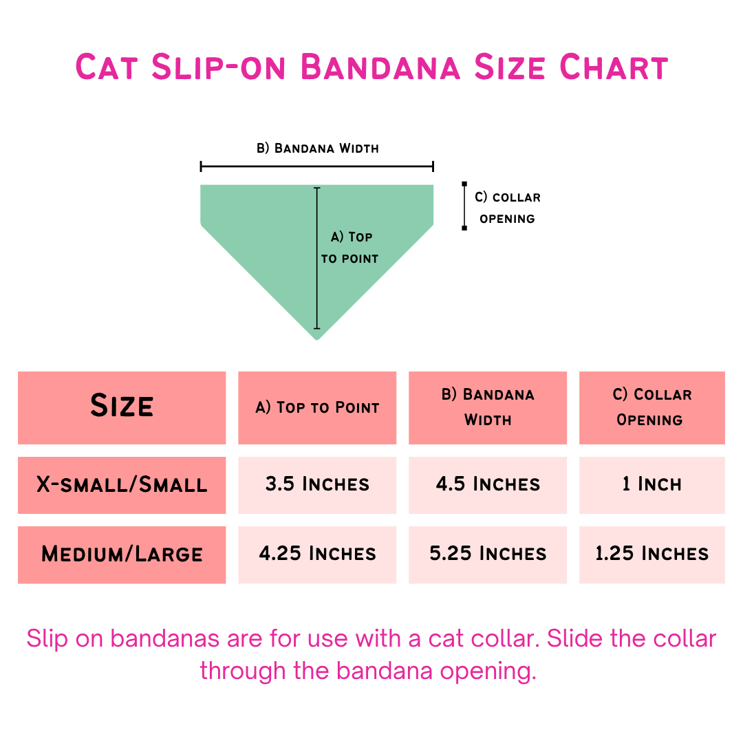 Choose the size based on how big or small you want the bandana to look on your cat. Refer to pictures for size chart.