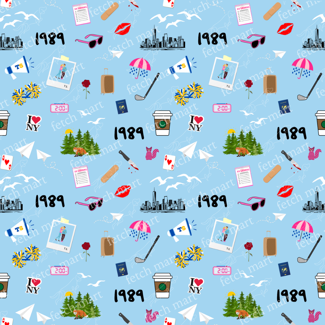The 1989 Era Bandana is made with 100% cotton fabric. Designed by Fetch Mart, this one of a kind bandana features designs that represent the 1989 era.