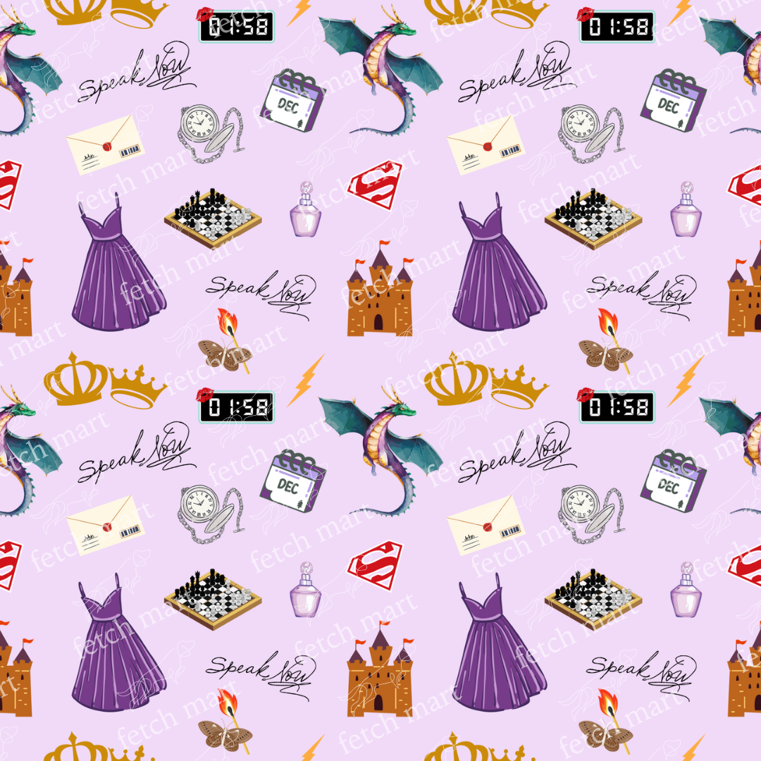 The Speak Now Era Bandana is made with 100% cotton fabric. Designed by Fetch Mart, this one of a kind bandana features designs that represent the Speak Now era.