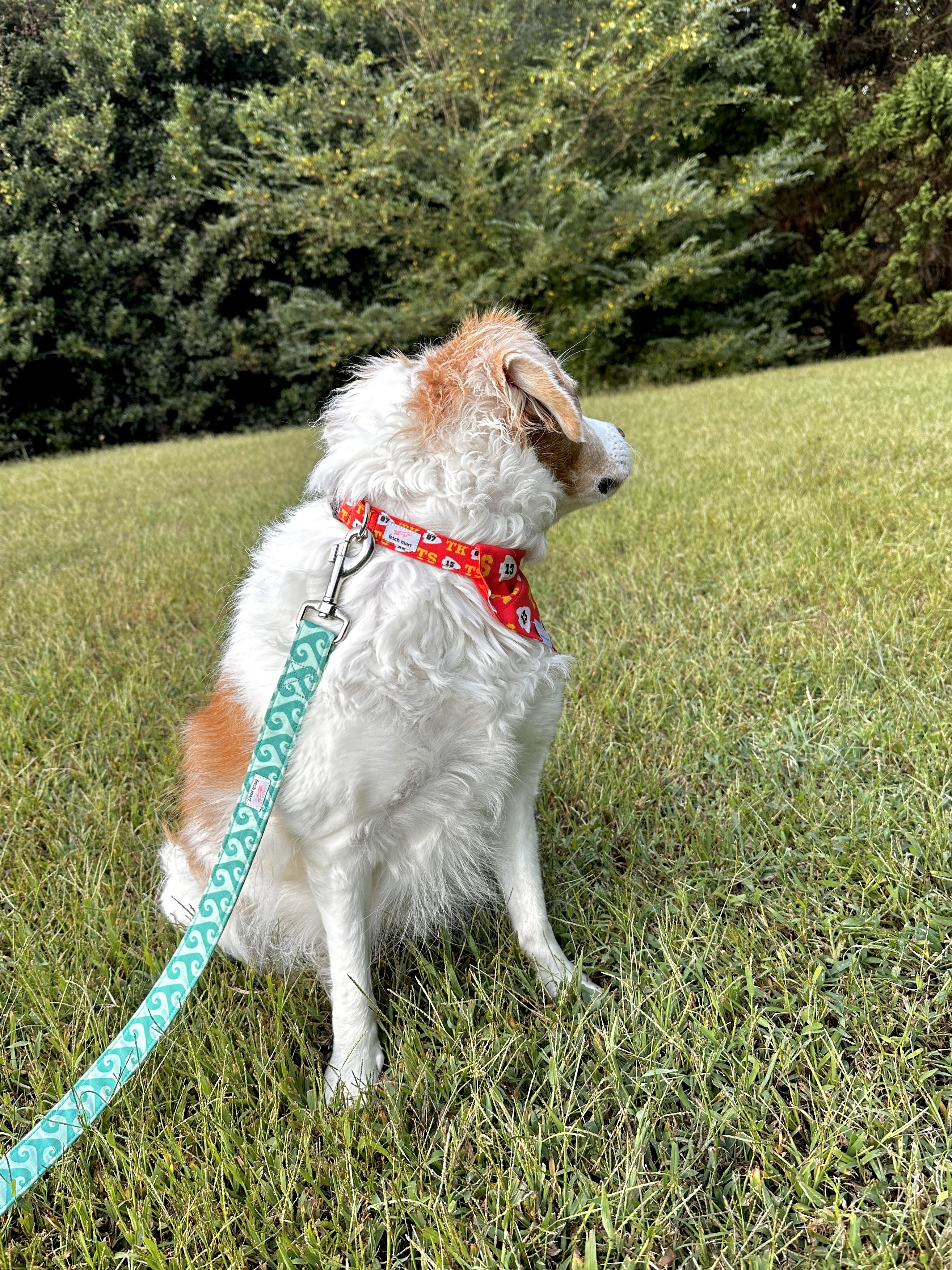 The Travis Era (Fetch Mart’s Version) Collar is made with 100% cotton fabric. Featuring Taylor's favorite number 13, with Travis’ Chiefs number 87.