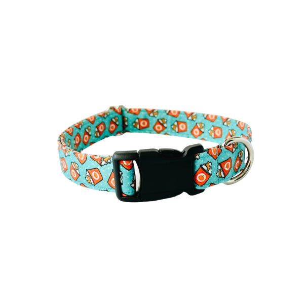 The Pup-kin Spice Latte Collar is made with 100% cotton fabric and reinforced with mold proof webbing. Available in a Classic or Martingale style collar.